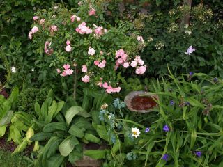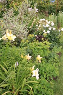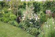 Graham Thomas rose, løvefod, stenbræk, salvie, iris, høj margurit og meget andet