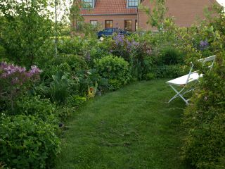 Bedene er tæt tilplantet for at holde ukrudtet væk og skabe en tæt og hyggelig atmosfære.